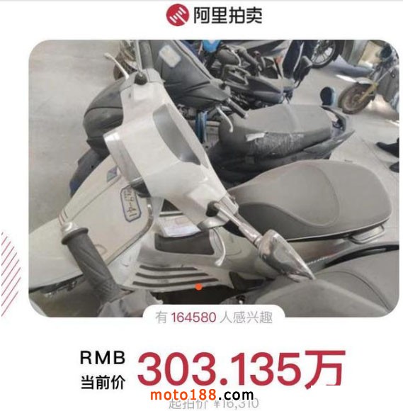 拍賣作為摩托車的關(guān)鍵詞還是頭一回,一輛京A牌照的二手車在阿里司法拍賣網(wǎng)上拍賣,從一開始就吸引住了吃瓜群眾的眼球,一萬(wàn)多元的起拍價(jià)一路飚升,二十萬(wàn)、五十萬(wàn)、一百萬(wàn)、二百萬(wàn)... ...直至303萬(wàn)才停了下來(lái),當(dāng)外行看不懂的時(shí)候,早已有人爆料內(nèi)幕所在,這既是對(duì)禁限摩的嘲諷,也是黃牛運(yùn)用規(guī)則的炫耀,當(dāng)然,也帶火了一個(gè)大貿(mào)品牌——VESPA,這個(gè)曾經(jīng)還只是高端踏板人群才知道的品牌一夜盡人皆知!