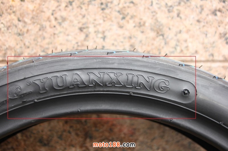 每個品牌都會在輪胎側(cè)面用LOGO的方式體現(xiàn),如下圖這個顯示的LOGO就是遠星的品牌標識,遠星也是國內(nèi)主流的品牌,和貝納利,錢江,宗申,隆鑫等都有多年的配套合作。