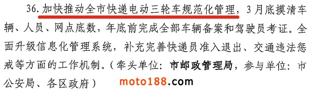 4月前完成“限摩限電”政策調整優化方案,推進電動自行車備案管理工作方案。
