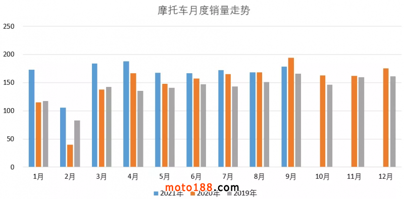 根據(jù)《中國摩托商會》的數(shù)據(jù)報(bào)告,9月,全國摩托車總產(chǎn)量179.72萬輛,總銷量178.46萬輛,環(huán)比增長5.2%,同比下降8.18%。