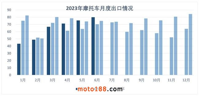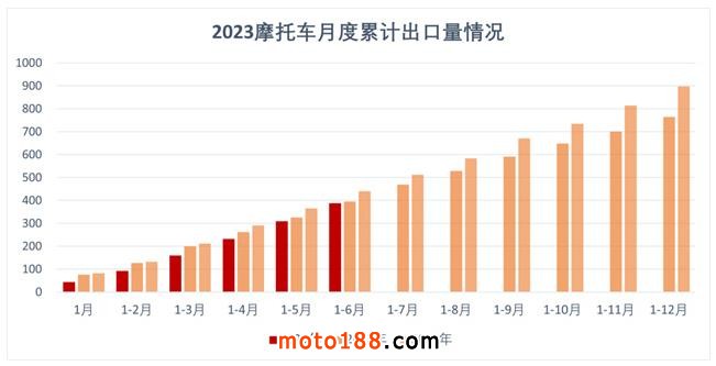 6月,據(jù)中國摩托車商會統(tǒng)計,摩托車出口繼續(xù)呈現(xiàn)恢復(fù)態(tài)勢,環(huán)比連續(xù)5個月增長,同比保持明顯增長。1-6月,累計出口降幅進一步縮窄,排量50ml和150ml產(chǎn)品拉動增長較為明顯,摩托車外貿(mào)出口穩(wěn)中向好的勢頭進一步延續(xù)。