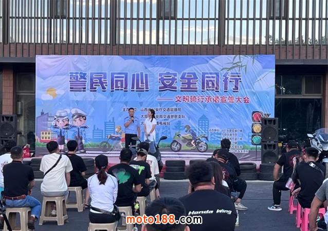 為有效遏制市區(qū)道路存在的飆車炸街違法行為,進(jìn)一步凈化道路交通秩序,維護(hù)道路交通安全,太原市公安局交警支隊(duì)聯(lián)合太原廣播電視臺(tái)交通事業(yè)部,于2023年7月14日開展以“讓安全先行,爭(zhēng)做文明騎士”為主題的騎手承諾宣誓大會(huì),號(hào)召?gòu)V大摩托車騎士摒棄交通陋習(xí),與平安同行。