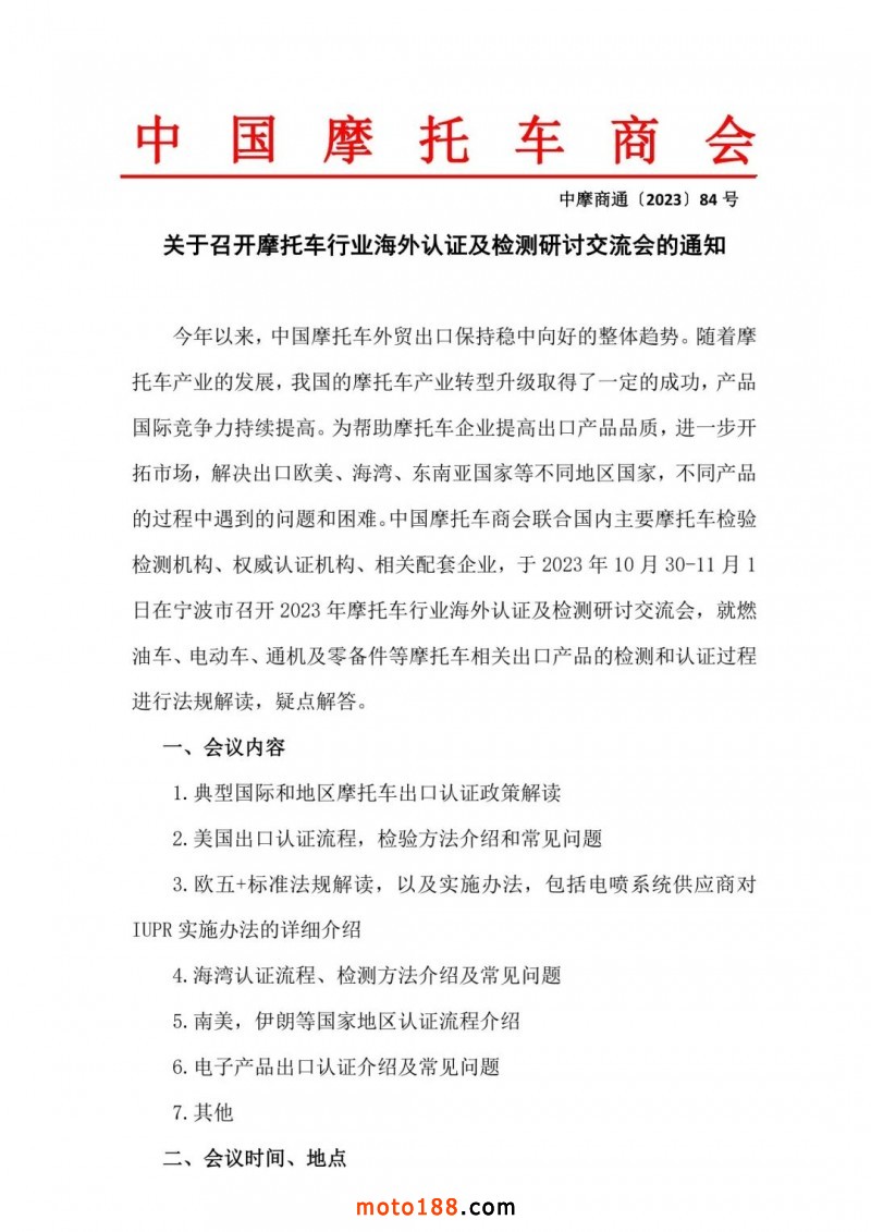 核心提示:關于召開摩托車行業海外認證及檢測研討交流會的通知?