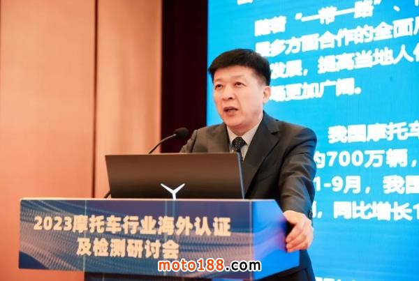 張洪波秘書長首先向各位代表介紹了我國摩托車外貿(mào)出口情況,根據(jù)中國摩托車商會的預測,2023年全年預計出口將超過1100萬輛,增長9%左右。“一帶一路”,RCEP, 東盟自由貿(mào)易區(qū)等多邊合作給摩托車出口帶來了新的機遇。我國摩托車出口結(jié)構(gòu)將持續(xù)優(yōu)化,出口產(chǎn)品持續(xù)提質(zhì)升級。希望我們的企業(yè),抓住這一歷史機遇,在國際上打造中國摩托車品牌形象,建立長遠的產(chǎn)品市場競爭力。