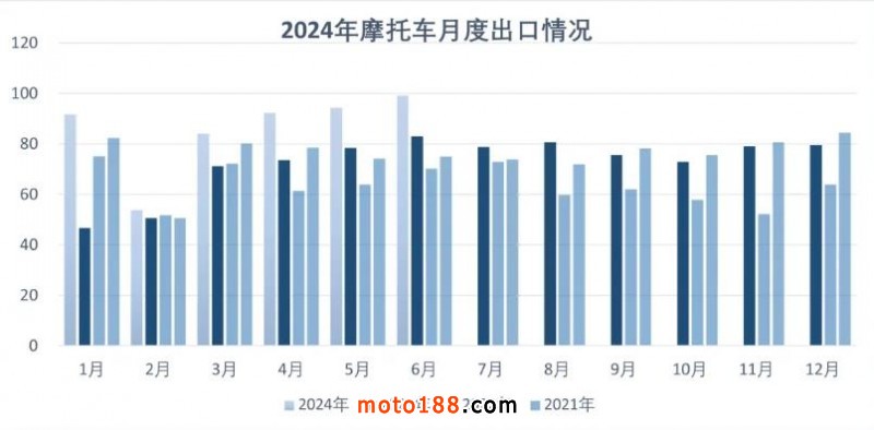 1-6月,摩托車生產(chǎn)企業(yè)產(chǎn)品出口總額41.82億美元,同比增長(zhǎng)20.76%。整車出口量515.09萬輛,同比增長(zhǎng)27.69%,出口金額33.1億美元,同比增長(zhǎng)20.15%。摩托車發(fā)動(dòng)機(jī)出口58.69萬臺(tái),同比增長(zhǎng)11.74%,出口金額1.27億美元,同比增長(zhǎng)9.71%。沙灘車出口22.78萬輛,同比增長(zhǎng)35.22%,出口金額5.58億美元,同比增長(zhǎng)30.53%。摩托車零部件出口金額1.87億美元,同比增長(zhǎng)13.37%。