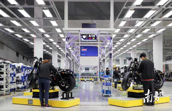江門是中國(guó)摩托車產(chǎn)業(yè)示范基地。圖為企業(yè)生產(chǎn)車間。 南方+記者董有逸 攝