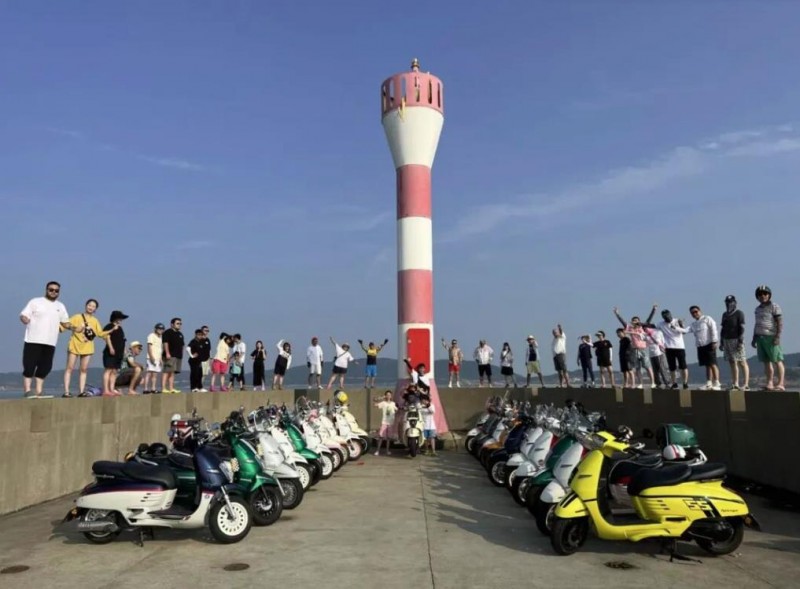 不同于一見鐘情的瑪麗,另一位成員小金魚是做過對(duì)比的,她說:“2021年夏天,我拿到駕照后,就一心想要一輛復(fù)古踏板。走進(jìn)車行第一眼,就被一款紅白配色的車深深吸引——怎么會(huì)有如此復(fù)古可愛的小車?當(dāng)看到海報(bào)上的海岸白配色時(shí),我徹底心動(dòng)了,在沒有見到實(shí)車的情況下,便毫不猶豫地盲訂。等待的日子里,我也比較過其他車型。有的造型偏向運(yùn)動(dòng),有的則因?yàn)槌俗惺芑蚩诒畔⒉欢喽晃遗懦W罱K讓我堅(jiān)定選擇的,是DJANGO那份恰到好處的法式優(yōu)雅,尤其是它飽滿圓潤(rùn)的尾部線條,一眼便讓人覺得就是它了。作為有深厚歷史的品牌,它也給了我額外的信賴感;后來更驚喜地發(fā)現(xiàn),我的海岸白竟與品牌歷史上的一款經(jīng)典車顏色遙相呼應(yīng),這仿佛是一場(chǎng)跨越時(shí)間的邂逅。對(duì)我而言,顏值即正義。擁有它后,我的頭盔、穿搭都不自覺地向著復(fù)古風(fēng)格靠攏。即使只是騎行幾公里,那片刻的風(fēng)與自由,便是對(duì)自己最好的取悅。復(fù)古是一種永恒的態(tài)度,我愛的正是它這份未曾隨波逐流的經(jīng)典模樣。”