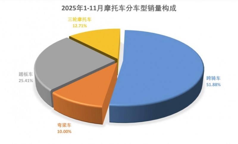 2025年1-11月份,我國(guó)共產(chǎn)銷摩托車2011.21萬(wàn)輛和2002.55萬(wàn)輛,其中,二輪摩托車產(chǎn)銷1756.37萬(wàn)輛和1748萬(wàn)輛,產(chǎn)銷量同比增長(zhǎng)10.82%和10.27%。