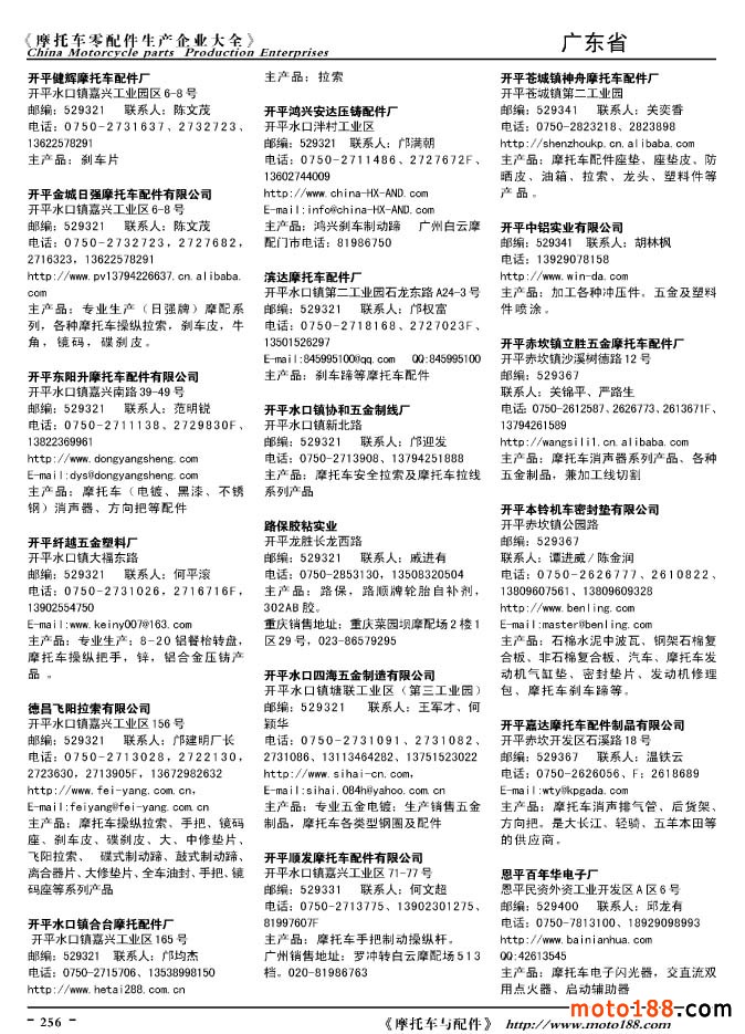 2010版摩托車配件生產企業大全