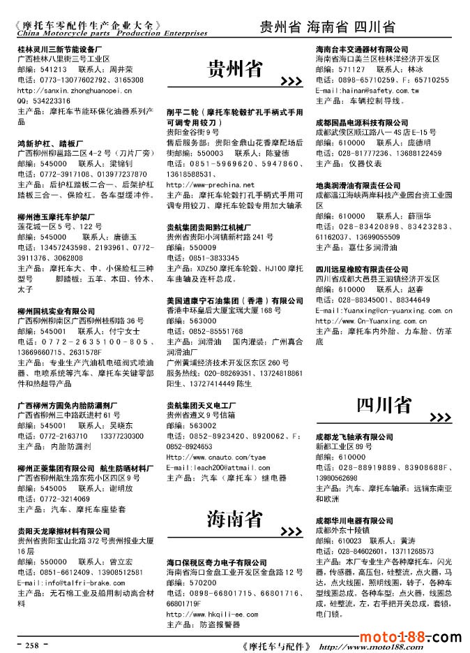 2010版摩托車配件生產(chǎn)企業(yè)大全