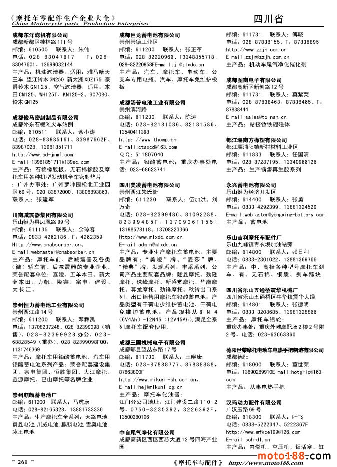 2010版摩托車配件生產(chǎn)企業(yè)大全