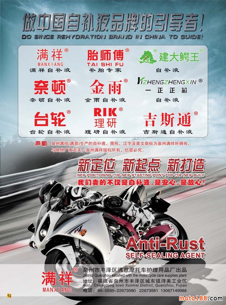 《摩托車與配件》自三月份正式改版后,雜志的    有較大的變化。因為是剛剛推出,市場還有一個適應時期,尤其一些市場人士有顧慮,擔心頻率加快以后廣告的留存期縮短,還有擔心印刷量會下降。為了慎重起見,我們雜志社在春運一結束后就安排部分人員去華東和華南及中南、西南等市場走了一遍。先后去了如皋、無錫、撫順、臺州以及商丘、鄭州、武漢、襄陽、荊州、株洲、長株潭、廣州、重慶、成都等市場,行程在隴海線南邊走了一圈。到市場第一線汲取客戶的意見,了解市場的發行,調整了部分發行點,并新建和恢復了六個發行點,進一步完善市場的發行。雜志改刊后不僅僅是期數的變化,更是一個系統的工作,這涉及到我們服務的提升,整個系統的升級。在這一期雜志內,我們會用一定的篇幅介紹我們所走過的市場的具體狀況。目前我們是行業長期調整以來僅存的專業媒體,一方面我們面臨市場的風險,如果不努力我們也會和前面已經淪陷的媒體一樣,被市場拋棄。另一方面來自我們內部及系統內的風險,即我們的管理和服務是否和雜志升級一樣,也在同步提升?我們面臨新的改革發展機會,我們能否把握住、把握好?在進行科學的發展時,不能因為太 太快而摔跤,所以我們雜志在今年的發展目標是:緊跟市場、穩中求進。在外銷市場面臨銷售不暢的現實情況下,如何服務好內需內銷市場,這也是我們和生產型企業共同要探討的課題。通過對市場的走訪,我們有了目標和方向,也有了信心和動力。正因為此,我們三月份推出雙期后所產生的一系列問題,我們都在妥善應對。今年四月份濟南會議,我們會展現我們去冬今春的勞動成果: