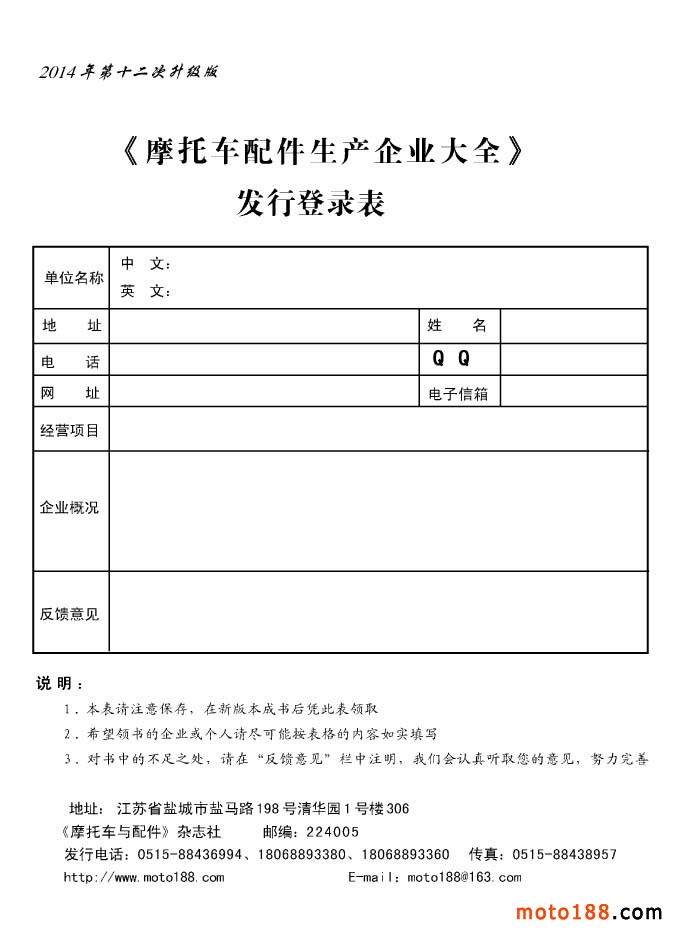 三年發(fā)行承諾的履行,并不是意味著我們工作的結(jié)束,而是我們?yōu)樾袠I(yè)服務(wù)的又一新開始。從今年下半年開始我們就已在籌劃對(duì)《摩托車與配件生產(chǎn)企業(yè)大全》進(jìn)行第十一次的升級(jí),這本書從有償銷售到無(wú)償發(fā)放的3年,期間我們一直在研究和探索怎樣更全面、更便捷的展示廠家信息。