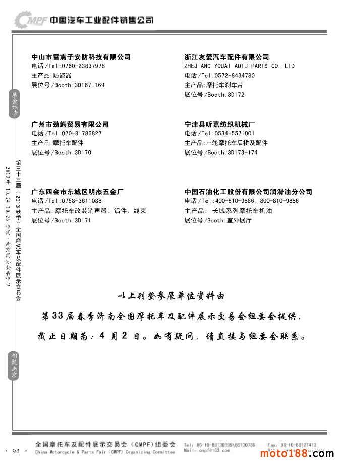 第33屆春季(濟南)全國摩托車及配件展示交易會參展企業名錄