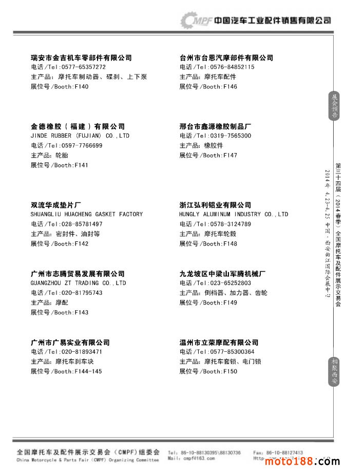 第33屆秋季(南京)全國摩托車及配件展示交易會參展企業名錄