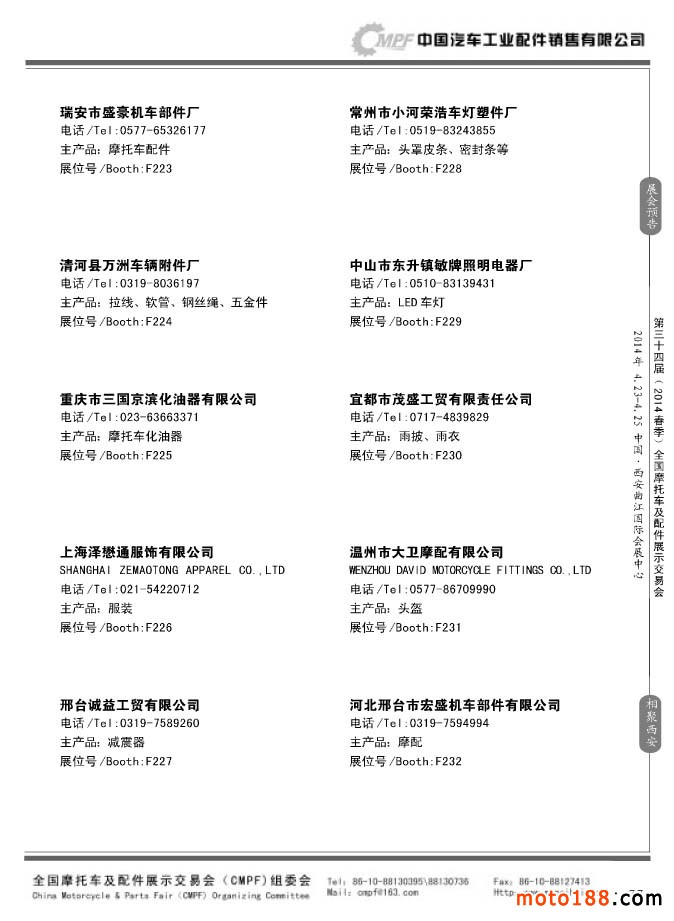 第33屆秋季(南京)全國摩托車及配件展示交易會參展企業名錄