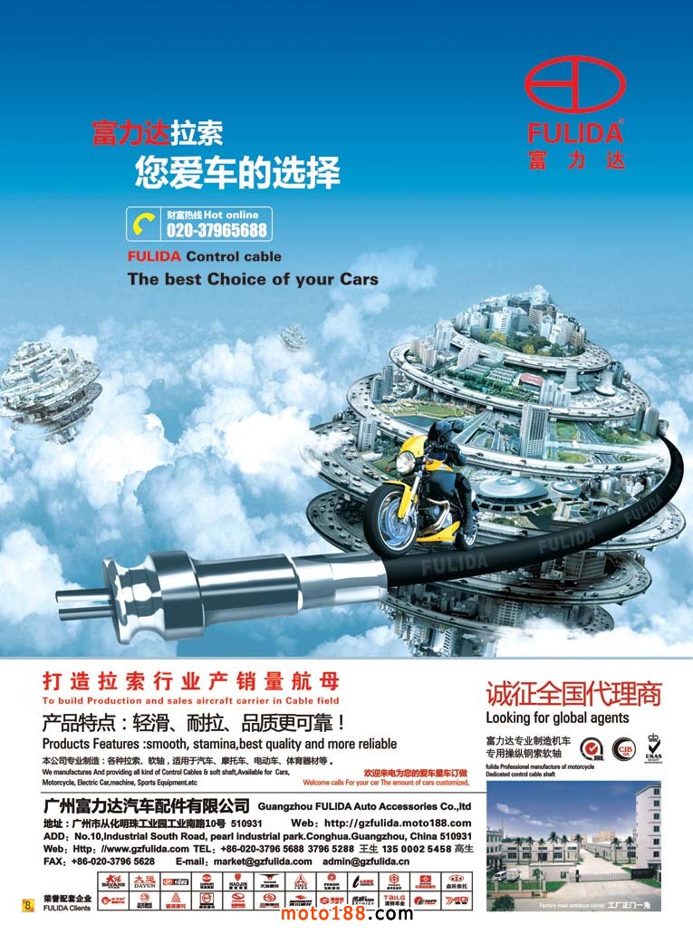 今年下半年我們將根據全摩會的地址變動而變動,下半年我們出版兩本書籍——《華南(廣東、海南)市場指南》、第十二次《中國摩托車配件生產業大全》升級版。廣州是中國摩托車配件的出口窗口,《華南版》廣州部分內容繼續用中英文雙語出版。