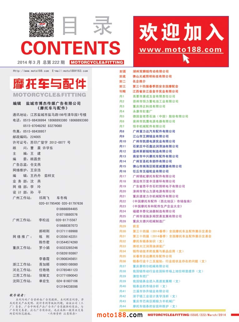 除了《西北市場指南》在會上投放,還有《會刊》由大會組委會分發(fā)給所有參會人員和企業(yè),我們的四月期全彩雜志以及第七期《摩托車與配件外貿(mào)報》。我們的展位在1142,歡迎在會上領(lǐng)取,指南需要名片交換,其余隨到隨取。