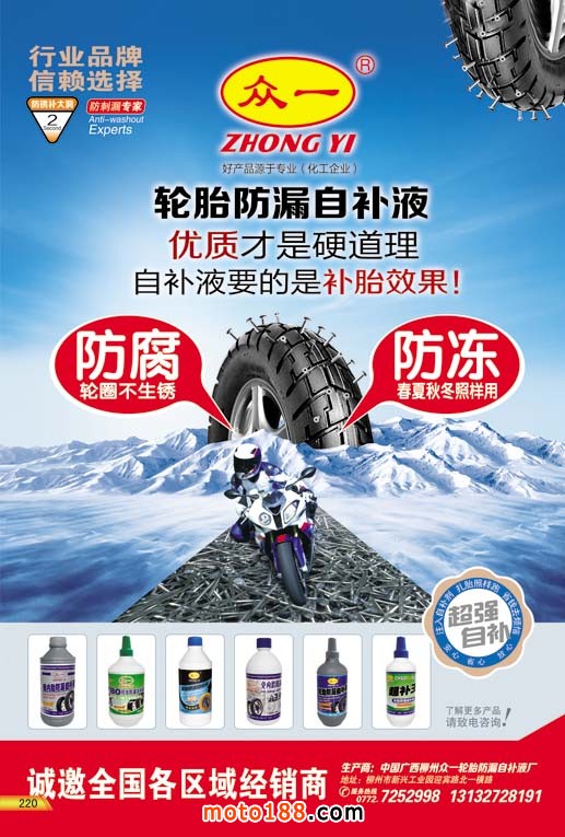 內220 中國廣西柳州眾一輪胎防漏自補液廠