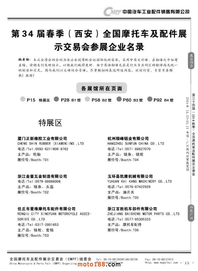 第34屆春季(西安)全國摩托車及配件展示交易會參展企業(yè)名錄
