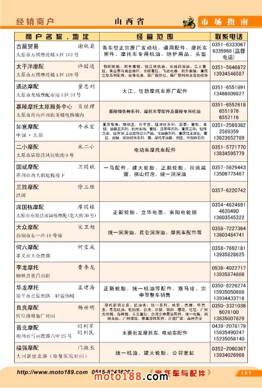 歷時半年,橫跨十三省市的《北方市場指南》今天終于成書,奉獻給行業企業,這本書是我們《中國摩托車配件市場指南》的第三個分冊,也是工作量和難度最大的一本書,為了資料的準確,我們雜志社全體內部工作人員,在炎熱的夏季里,孜孜不倦地工作,先后冒著酷暑兵分三 路去西北、華北、東北的省份,由于夏季暑運高峰,交通也十分不便,有時為了趕路,甚至乘了三十多個小時無空調的大巴車。今天看到這本混合我們汗水和心血的《北方市場指南》我們感覺這份果實更加不同尋常,彌加珍貴。