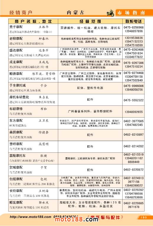 歷時半年,橫跨十三省市的《北方市場指南》今天終于成書,奉獻給行業(yè)企業(yè),這本書是我們《中國摩托車配件市場指南》的第三個分冊,也是工作量和難度最大的一本書,為了資料的準確,我們雜志社全體內部工作人員,在炎熱的夏季里,孜孜不倦地工作,先后冒著酷暑兵分三 路去西北、華北、東北的省份,由于夏季暑運高峰,交通也十分不便,有時為了趕路,甚至乘了三十多個小時無空調的大巴車。今天看到這本混合我們汗水和心血的《北方市場指南》我們感覺這份果實更加不同尋常,彌加珍貴。
