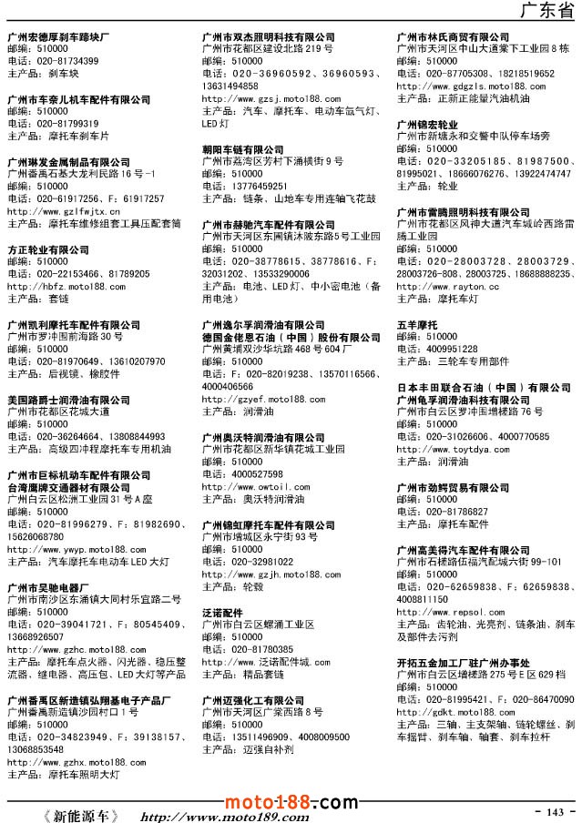 這兩年行業(yè)調(diào)整力度非常大,為了確保我們提供的信息準(zhǔn)確性,我們本著寧缺毋濫的原則,不去圖虛的數(shù)量。目前摩托車與配件行業(yè)的不少經(jīng)銷商是跨行業(yè)經(jīng)營(yíng)的,所以我們?cè)诒緯性黾恿瞬糠帜ν熊囌噺S、電動(dòng)車生產(chǎn)廠、機(jī)動(dòng)三輪車制造廠。所選的這些企業(yè)都是這個(gè)行業(yè)具有影響力的品牌企業(yè),是為了大家在使用這本書時(shí),獲取相關(guān)的延伸產(chǎn)業(yè)更多的實(shí)用信息。