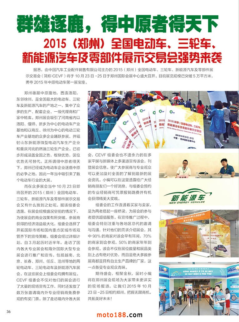 內36 群雄逐鹿,得中原者得天下——2015(鄭州)全國電動車、三輪車、新能源汽車及零部件展示交易會強勢來襲