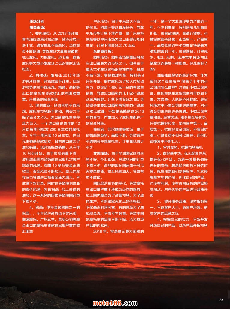面對新常態(tài),我們也做好了思想上的準(zhǔn)備,既要有定力也要有張力,穩(wěn)中求發(fā)展,只要中國經(jīng)濟(jì)不崩潰,摩托車行業(yè)總有一席生存之地。曾經(jīng)滄海難為水,除卻巫山不是云。行業(yè)同仁們,信心比金錢更重要,冬天來了,春天還會遠(yuǎn)嗎?