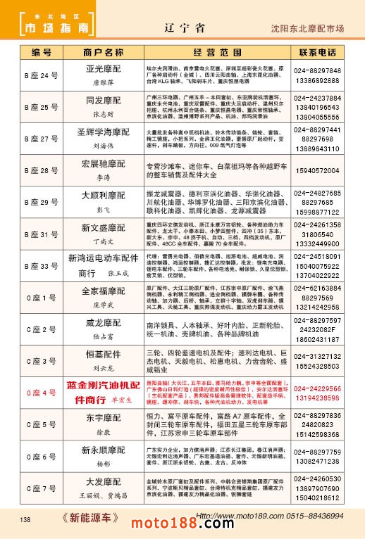 中國摩配市場從上世紀(jì)九十年代開始經(jīng)過高速度的發(fā)展,正逐步減速,摩托車行業(yè)也漸呈式微,與之緊密相關(guān)的后市場的配件與維修也呈逐步下滑之勢,取代摩托車的在發(fā)達(dá)地區(qū)是汽車,欠發(fā)達(dá)地區(qū)是電動兩輪、電動三輪,甚至電動四輪車,隨著經(jīng)濟(jì)的發(fā)展,出行的多樣化,也給了消費(fèi)者多重的選擇。目前現(xiàn)有的摩托車及配件市場,也不再是以純摩托車為主體,有的市場電動車取代了摩托車,有的商店也是混合經(jīng)營,這些變化在《市場指南》里面都有所反應(yīng)。這次《北方指南》一些小市場不再單列,并入到相應(yīng)的省份中去;以前去市場的公交線路,書中也不再列入,因?yàn)楝F(xiàn)在的地圖導(dǎo)航功能十分強(qiáng)大,既新又準(zhǔn)。