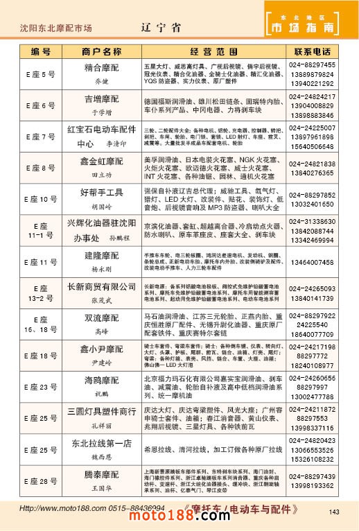 中國摩配市場從上世紀九十年代開始經過高速度的發展,正逐步減速,摩托車行業也漸呈式微,與之緊密相關的后市場的配件與維修也呈逐步下滑之勢,取代摩托車的在發達地區是汽車,欠發達地區是電動兩輪、電動三輪,甚至電動四輪車,隨著經濟的發展,出行的多樣化,也給了消費者多重的選擇。目前現有的摩托車及配件市場,也不再是以純摩托車為主體,有的市場電動車取代了摩托車,有的商店也是混合經營,這些變化在《市場指南》里面都有所反應。這次《北方指南》一些小市場不再單列,并入到相應的省份中去;以前去市場的公交線路,書中也不再列入,因為現在的地圖導航功能十分強大,既新又準。