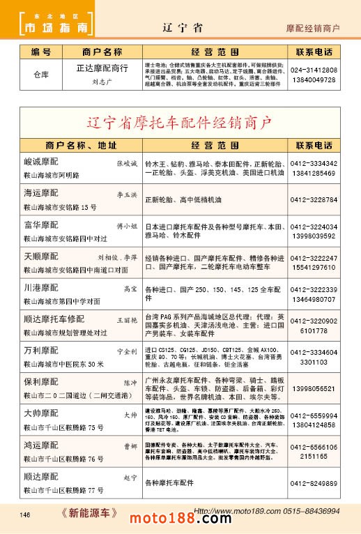 中國摩配市場從上世紀(jì)九十年代開始經(jīng)過高速度的發(fā)展,正逐步減速,摩托車行業(yè)也漸呈式微,與之緊密相關(guān)的后市場的配件與維修也呈逐步下滑之勢,取代摩托車的在發(fā)達(dá)地區(qū)是汽車,欠發(fā)達(dá)地區(qū)是電動(dòng)兩輪、電動(dòng)三輪,甚至電動(dòng)四輪車,隨著經(jīng)濟(jì)的發(fā)展,出行的多樣化,也給了消費(fèi)者多重的選擇。目前現(xiàn)有的摩托車及配件市場,也不再是以純摩托車為主體,有的市場電動(dòng)車取代了摩托車,有的商店也是混合經(jīng)營,這些變化在《市場指南》里面都有所反應(yīng)。這次《北方指南》一些小市場不再單列,并入到相應(yīng)的省份中去;以前去市場的公交線路,書中也不再列入,因?yàn)楝F(xiàn)在的地圖導(dǎo)航功能十分強(qiáng)大,既新又準(zhǔn)。