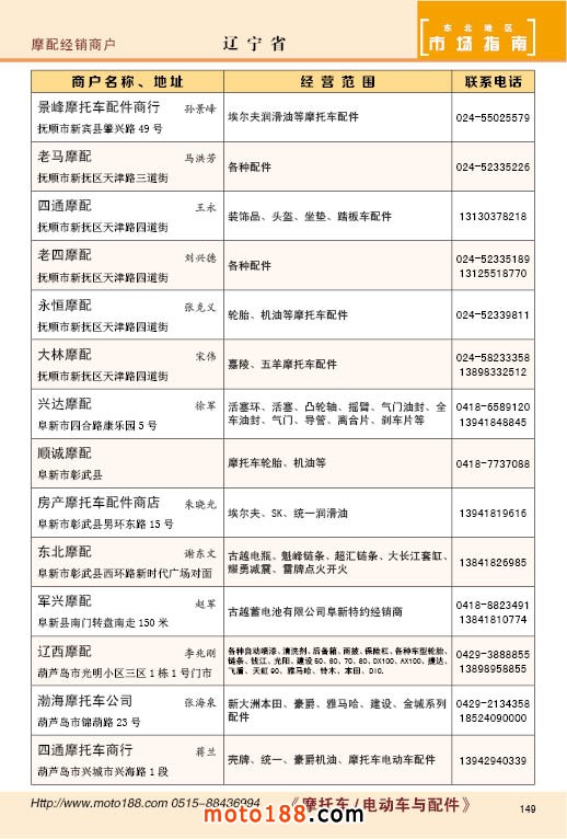 內149 遼寧省摩托車配件經銷商戶