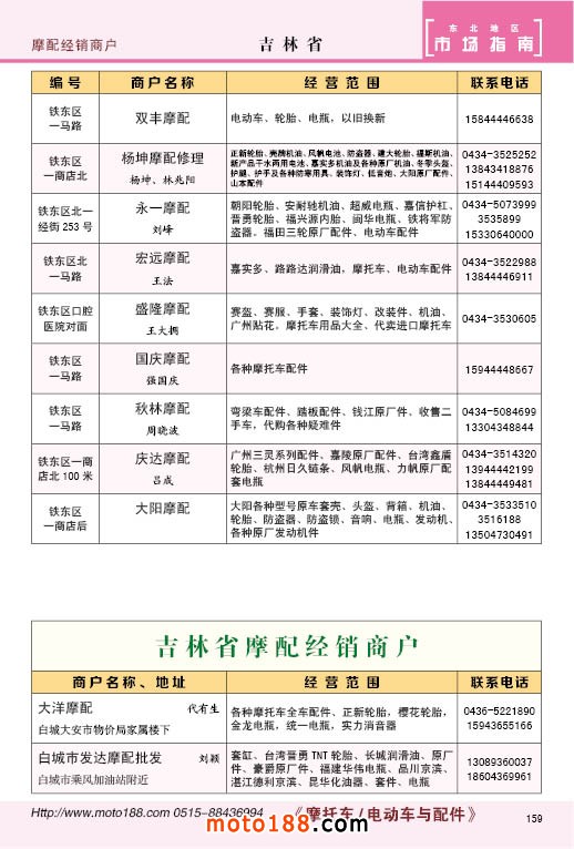 中國摩配市場從上世紀九十年代開始經過高速度的發展,正逐步減速,摩托車行業也漸呈式微,與之緊密相關的后市場的配件與維修也呈逐步下滑之勢,取代摩托車的在發達地區是汽車,欠發達地區是電動兩輪、電動三輪,甚至電動四輪車,隨著經濟的發展,出行的多樣化,也給了消費者多重的選擇。目前現有的摩托車及配件市場,也不再是以純摩托車為主體,有的市場電動車取代了摩托車,有的商店也是混合經營,這些變化在《市場指南》里面都有所反應。這次《北方指南》一些小市場不再單列,并入到相應的省份中去;以前去市場的公交線路,書中也不再列入,因為現在的地圖導航功能十分強大,既新又準。