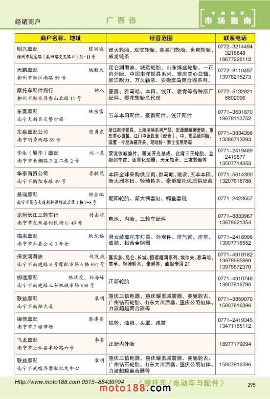 內(nèi)295廣西省摩托車配件經(jīng)銷商戶