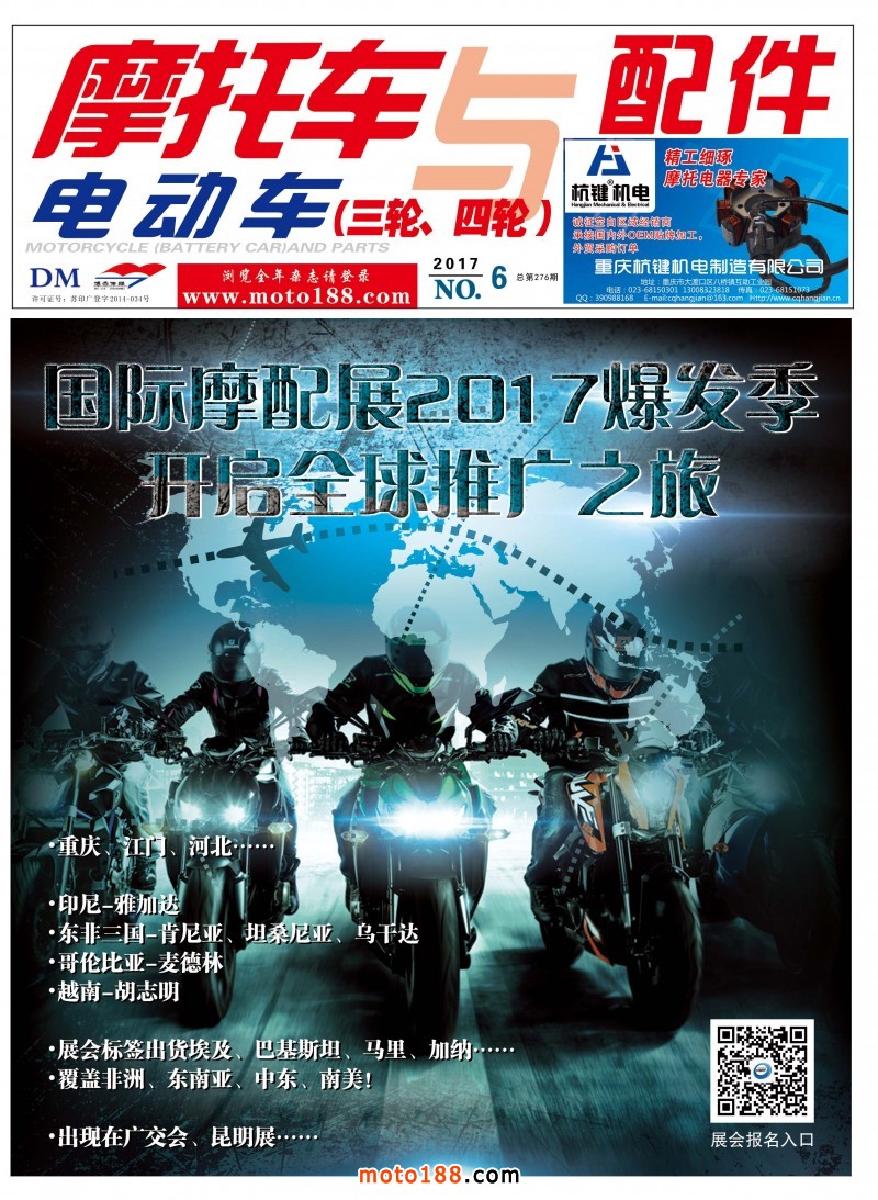 2017.6月《摩托車(chē)/電動(dòng)車(chē)與配件》雜志,歡迎大家閱讀日期:2017-06-02 點(diǎn)擊:1287 查看原圖 全部展開(kāi)![]() ![]() ![]() 封面 國(guó)際摩配展2017爆發(fā)季 開(kāi)啟全球推廣之旅