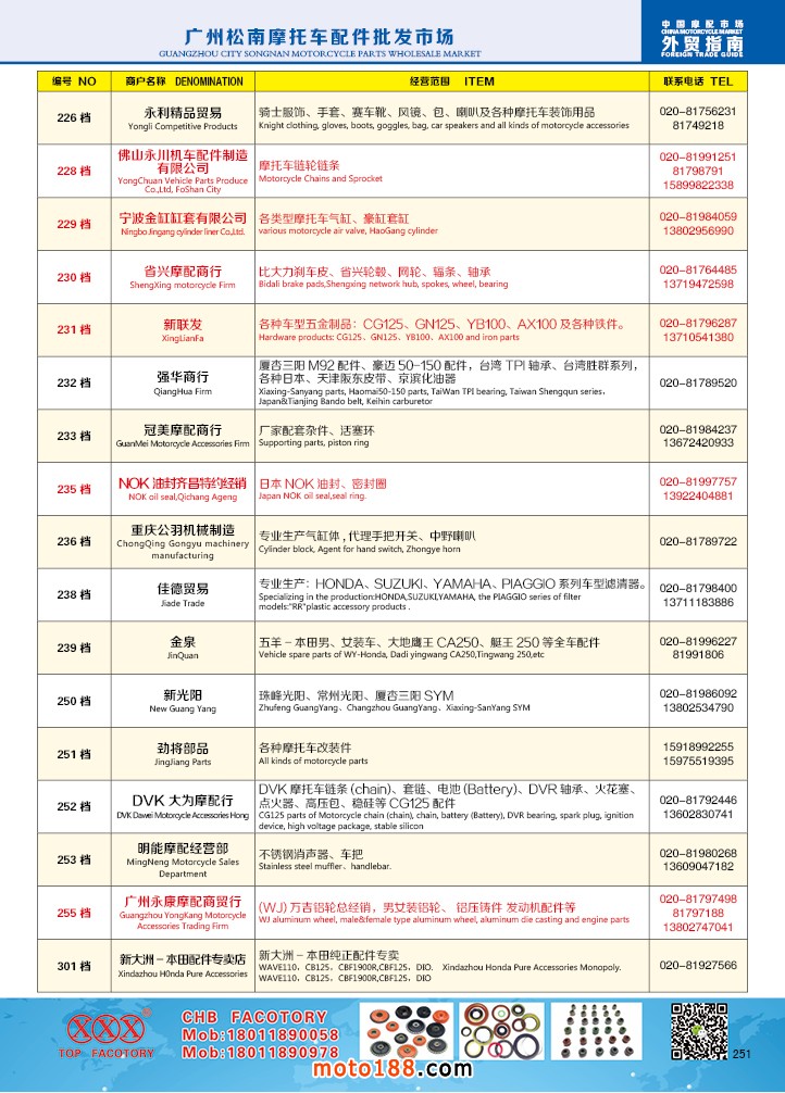 由《摩托車與配件》雜志社,在國內首次獨家推出的《中國摩托車配件外貿市場指南》工具書正式面世。這是一本專業定位于外貿企業的工具書,隨著一帶一路發展戰略的推進,更多企業走出國門,將產品銷往世界各地,本書收集了國內主要從事摩托車配件外貿的工廠、商家、國外部分駐華采購機構等資料匯總而成.