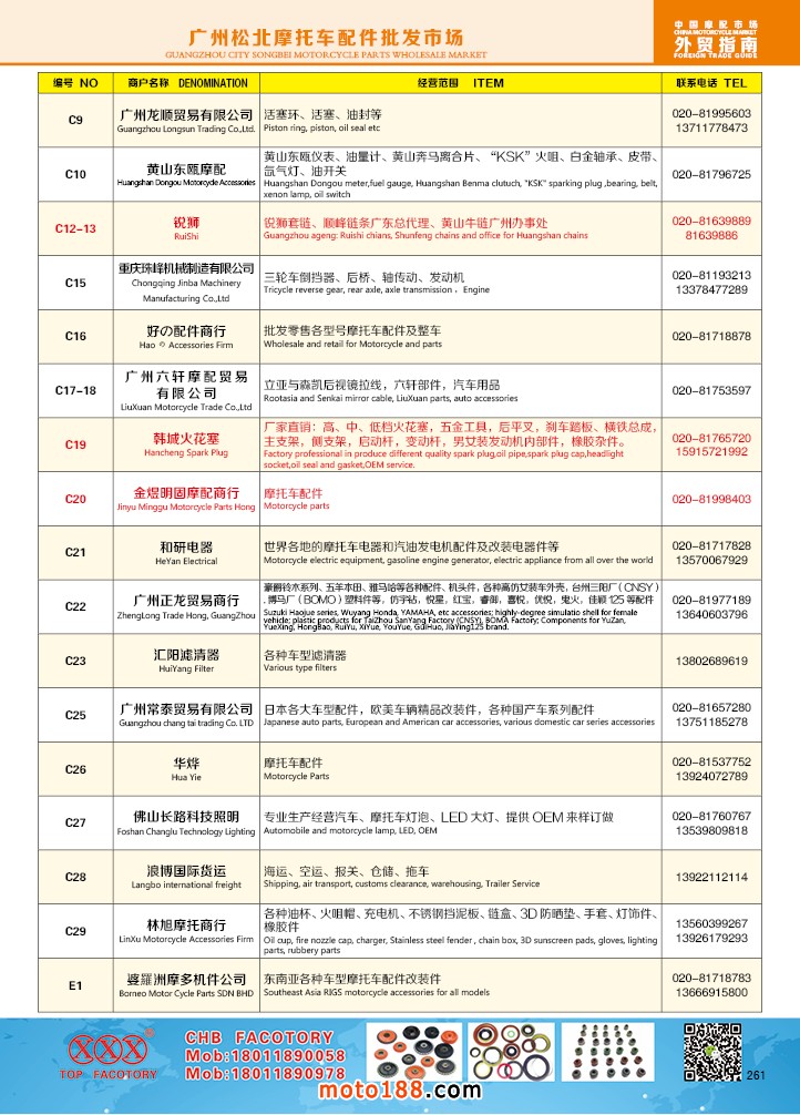由《摩托車與配件》雜志社,在國內首次獨家推出的《中國摩托車配件外貿市場指南》工具書正式面世。這是一本專業定位于外貿企業的工具書,隨著一帶一路發展戰略的推進,更多企業走出國門,將產品銷往世界各地,本書收集了國內主要從事摩托車配件外貿的工廠、商家、國外部分駐華采購機構等資料匯總而成.