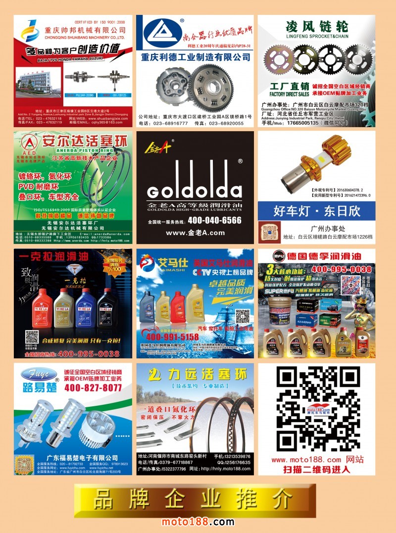 《摩托車與配件》傳統(tǒng)媒體與新媒體的結合,以及我們腳踏實地的工作。這一年多來,雜志已經華麗的轉身,并且拓展出新的發(fā)展空間,可為摩配行業(yè)企業(yè)提供更多的服務形式。目前我們己基本將全行業(yè)的從業(yè)人員加為微信好友,為國內外貿企業(yè)建了四個群,同時又建國內五大市場群,方便了業(yè)務開展和企業(yè)互動;完成了對全國市場的新一輪的走訪,對國內摩配市場有了一個全面的準確的認識;完成了對目前現(xiàn)有摩配生產廠家的資料更新。2017我們蓄勢待發(fā),2018我們揚帆起航!