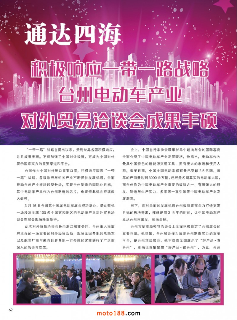 內62 通達四海 積極響應一帶一路戰略 臺州電動車產業對外貿易洽 談會成果豐碩