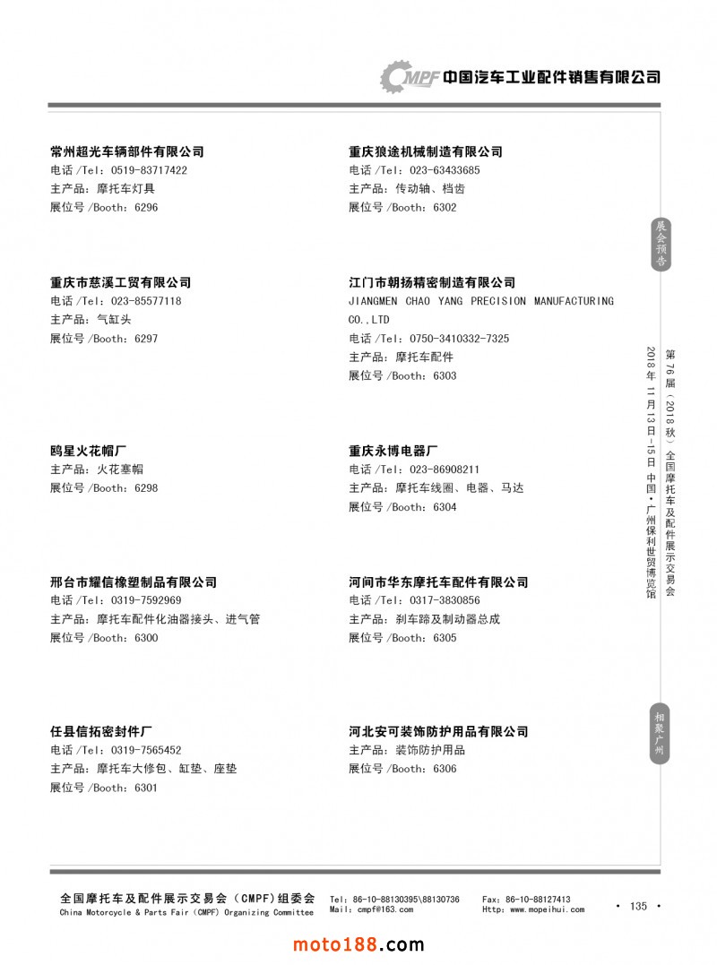 內135 第75屆(2018春)全國摩托車及配件展示交易會-重慶站參展企業信息