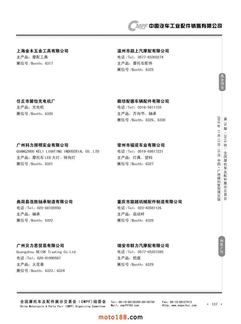內137 第75屆(2018春)全國摩托車及配件展示交易會-重慶站參展企業信息