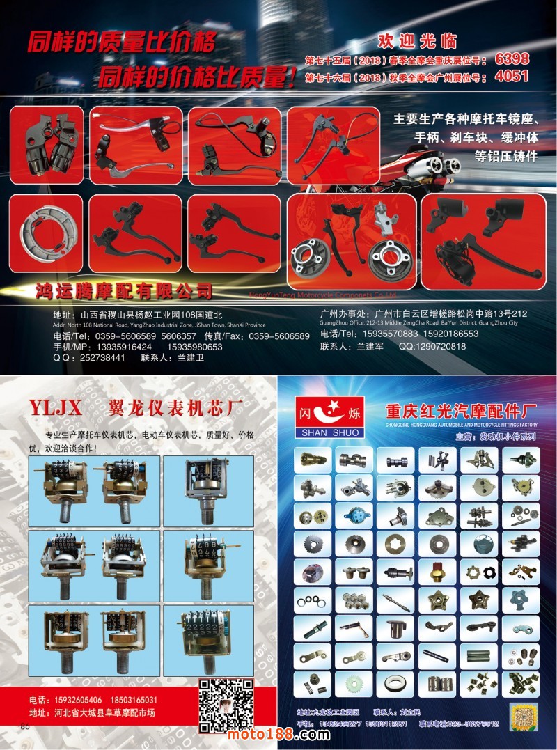 2018.5月《摩托車/電動車與配件》雜志,歡迎大家閱讀日期:2018-04-25 點(diǎn)擊:1892 查看原圖 全部展開![]() ![]() ![]() 內(nèi) 86 鴻運(yùn)騰摩配有限公司