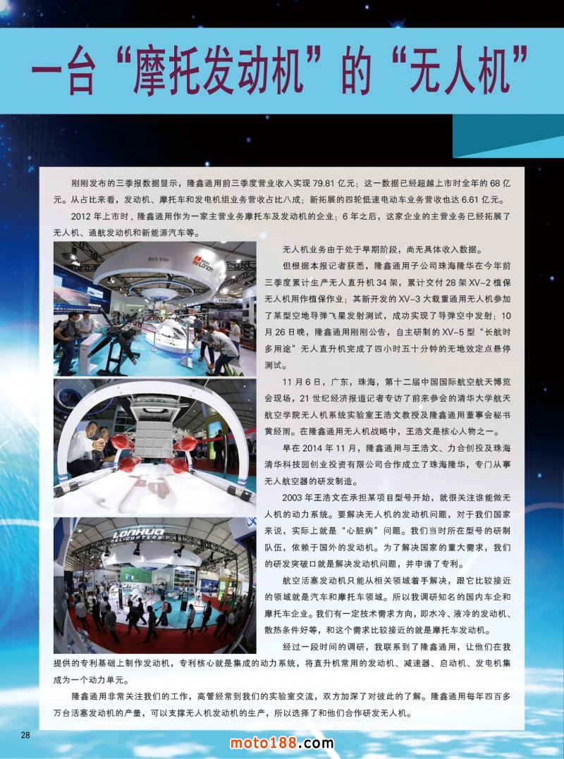 在這個(gè)春天里我們感受到和風(fēng)拂面,我們更堅(jiān)定了信心,我們傳統(tǒng)媒體務(wù)實(shí)的發(fā)展和經(jīng)營,基礎(chǔ)工作在不斷的加厚夯實(shí),今年我們雜志進(jìn)行了大調(diào)整,一年只在銷售季里出刊,全年出刊四期精品,本期雜志就有許多重要信息發(fā)布:政策面上的行業(yè)和地方上的重要政策(如前所述),18年的市場數(shù)據(jù)匯總分析,通機(jī)產(chǎn)品技術(shù)介紹 ,行業(yè)有關(guān)的重要國際資訊,國際巨頭研發(fā)生產(chǎn)的情況動(dòng)態(tài),電摩行業(yè)電動(dòng)三四輪及動(dòng)力電池最新的國家和地方政策,從海量的信息里精挑細(xì)選,每一遍文章都能讓讀者開卷有限,同時(shí)還值得收藏。