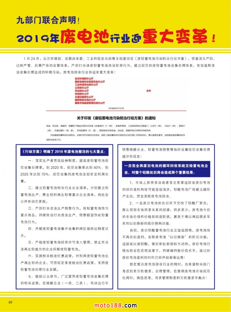 在這個春天里我們感受到和風拂面,我們更堅定了信心,我們傳統媒體務實的發展和經營,基礎工作在不斷的加厚夯實,今年我們雜志進行了大調整,一年只在銷售季里出刊,全年出刊四期精品,本期雜志就有許多重要信息發布:政策面上的行業和地方上的重要政策(如前所述),18年的市場數據匯總分析,通機產品技術介紹 ,行業有關的重要國際資訊,國際巨頭研發生產的情況動態,電摩行業電動三四輪及動力電池最新的國家和地方政策,從海量的信息里精挑細選,每一遍文章都能讓讀者開卷有限,同時還值得收藏。