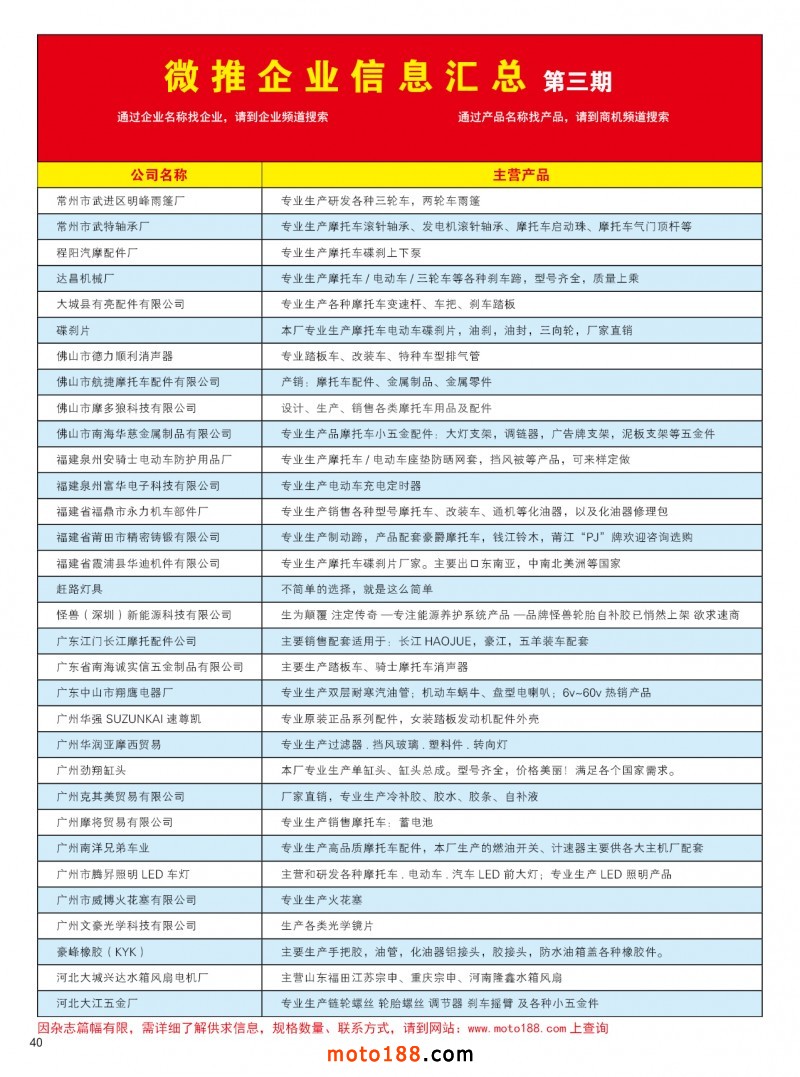 通機行業是摩托車發動機類的企業產品的延伸,目前在這個行業我們也發現了許多的商機,通用的小型發動機是我們各行各業的機械化的必備設備,動力的來源,通過這種小型動力機械,我們的服務線可以延伸到:農機、園機、建機、工機、林機、漁機……目前已經著手布局往這個行業進軍,由于雜志的內容的限制,我們準備新建通機行業的公眾號,增加對通機行業的信息發布,同時我們的網站也將進一步完善功能,為通機行業留下接口,我們的服務線也在往這個方向延伸。下半年我們將在三個公眾號(摩托車、電動車、通機)上發力,將雜志壓縮期數的缺憾,通過新媒體新的形式來彌補。