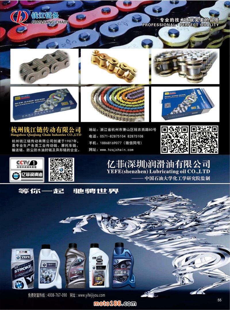 2019.5月《摩托車/電動車與配件》雜志,歡迎大家閱讀日期:2019-05-08 點(diǎn)擊:1859 查看原圖 全部展開![]() ![]() ![]() 內(nèi)55 杭州錢江鏈傳動有限公司
