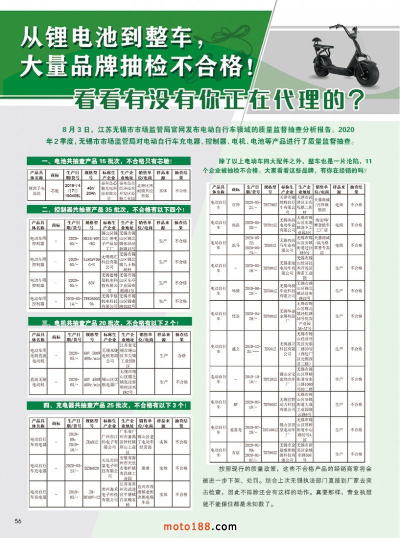 內56 從鋰電池到整車,大量品牌抽檢不合格!