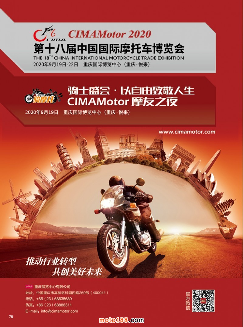 第18屆中國國際摩托車博覽會將于9月19-22日在重慶國際博覽中心舉行,本期雜志除正常發行之外,還將在重慶摩博會上發行。同時我們將做好終極版的《電摩與配件》11月雜志,以及廣州摩配會的《會刊》,善始善終,以完美的結局進行收尾,不負行業不負你,不忘初心方得始終。
