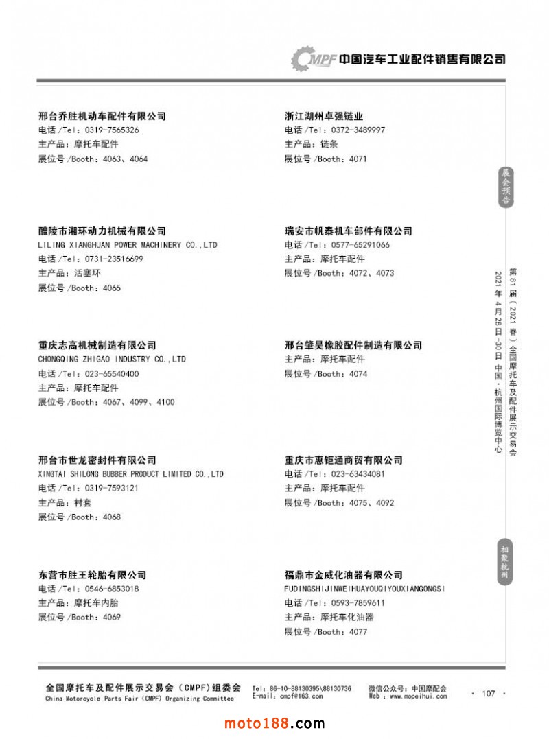 內107 第80屆(2020秋)全國摩托車及配件展示交易會-廣州站參展企業信息